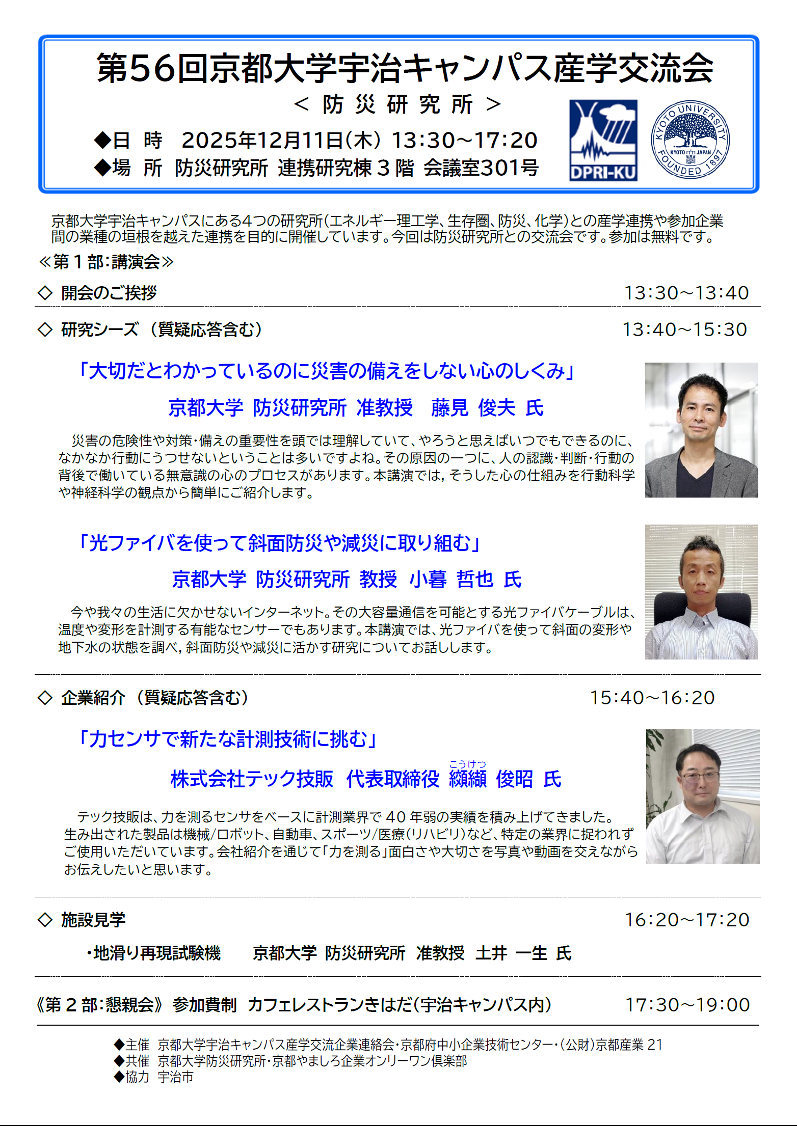 第56回 京都大学宇治キャンパス産学交流会<防災研究所>開催のご案内