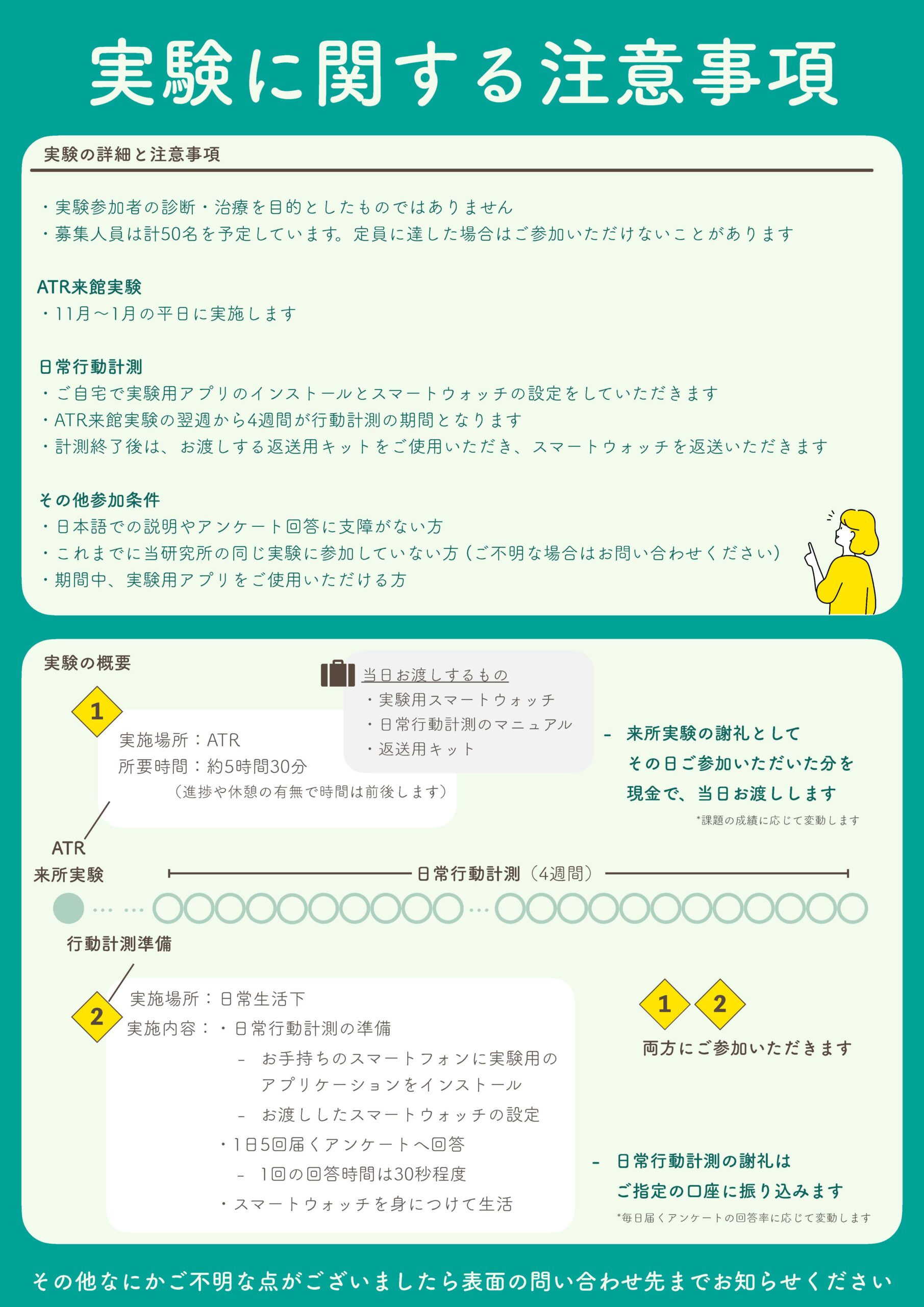 本実験はATRで実施する実験と日常生活中での計測に分かれています.