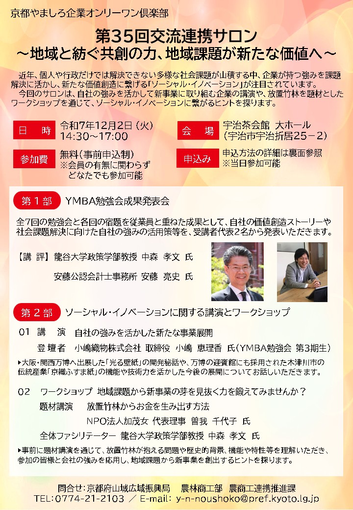 京都やましろ企業オンリーワン俱楽部 交流連携サロンのご案内