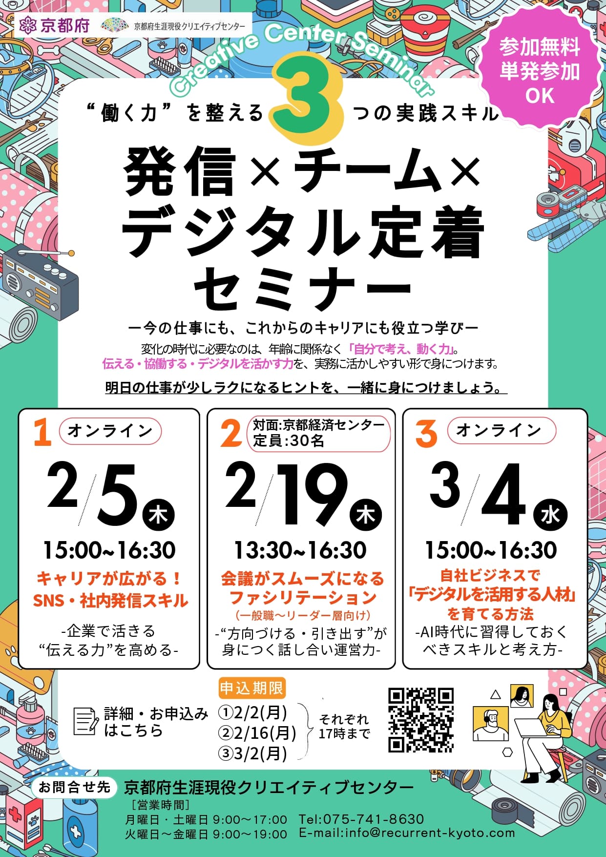 京都府生涯現役クリエイティブセンターでは、このたび、“働く力”を整える3つの実践スキルをテーマにしたセミナーを開催します!