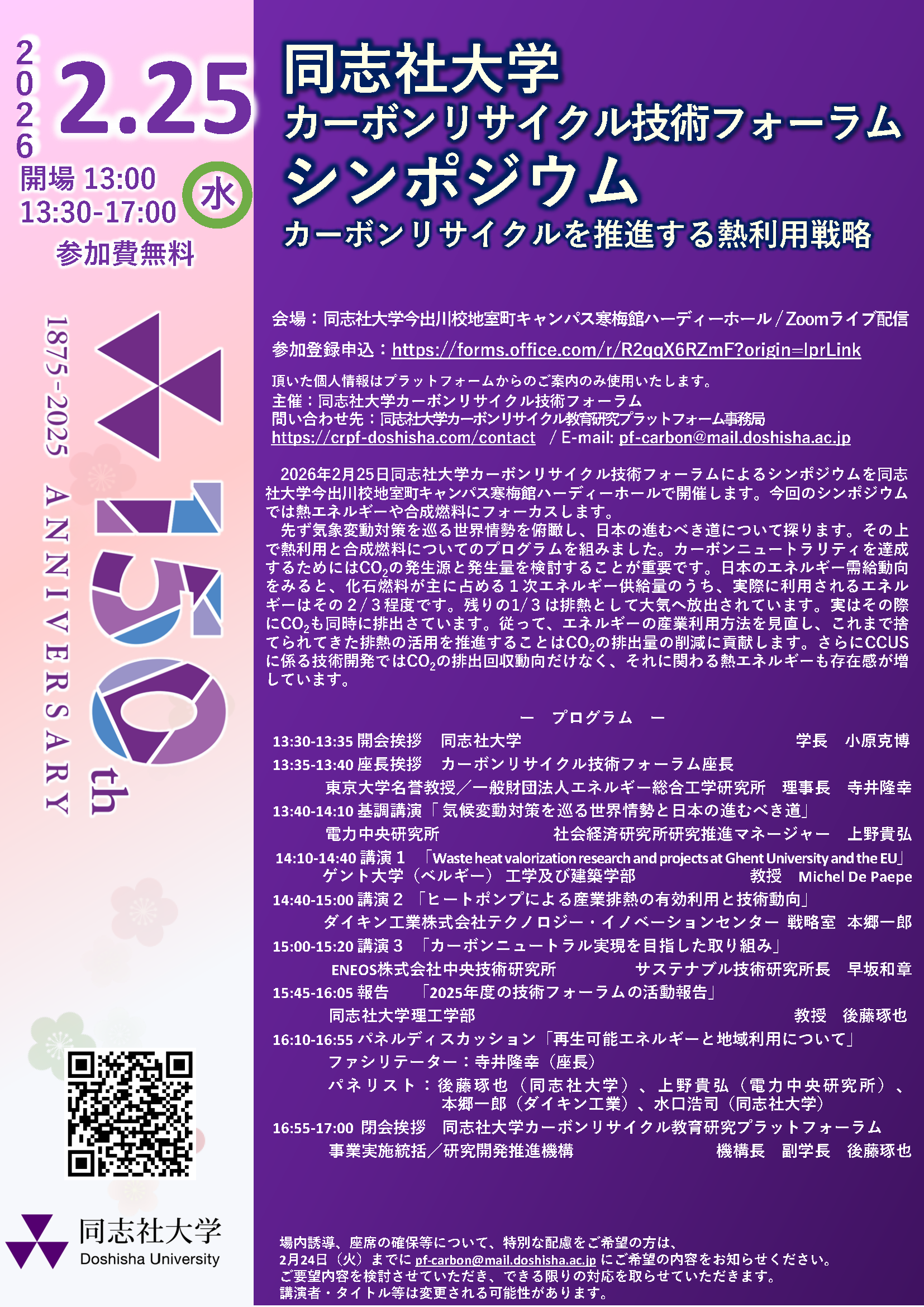 同志社大学カーボンリサイクル技術フォーラム2025年度シンポジウムを開催します(2/25開催)