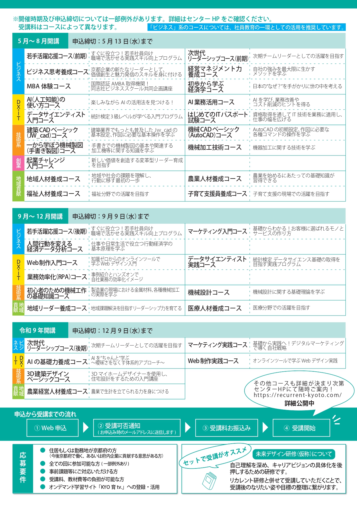 ・応募締め切り:8月までの開講分は5/13(水)17:00まで