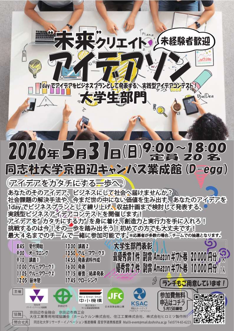 主催:同志社大学、京田辺市、中小企業基盤整備機構、日本政策金融公庫、関西スタートアップアカデミア・コアリション