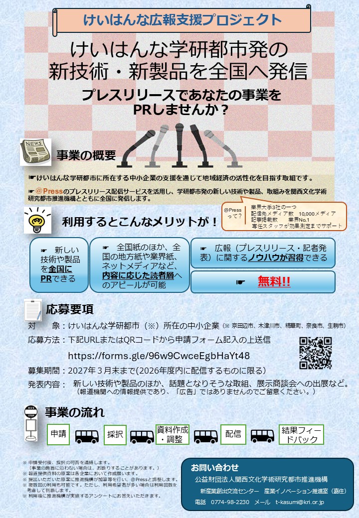 けいはんな広報支援プロジェクトで、あなたの事業を全国にPRしませんか?